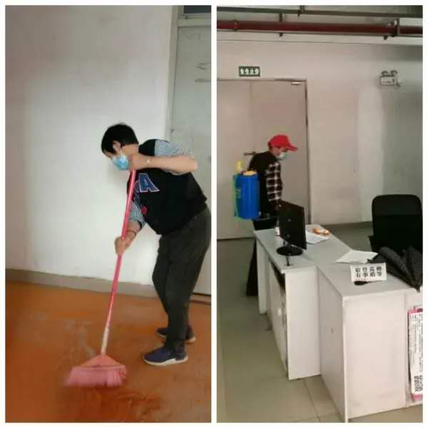 积极联系物业公司对学生宿舍楼公共区域及周围卫生死角进行清理,定期对宿舍楼宇公共区域进行消毒,随时准备好迎接学生返校复课!