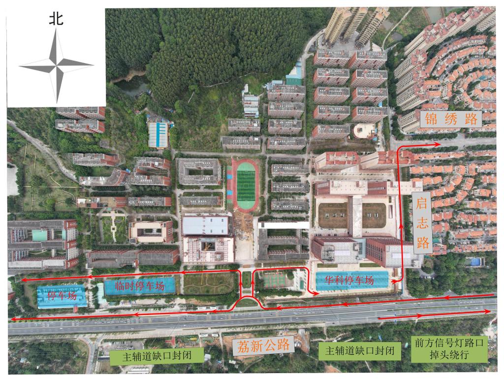 3.车辆一律从东门(华科停车场)/西门离校;