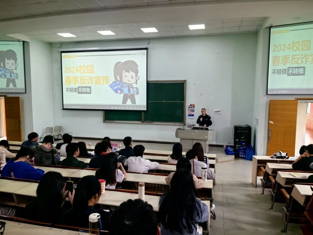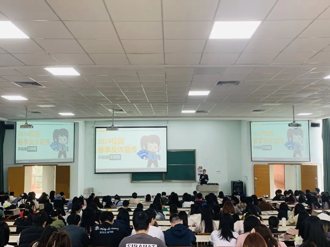 裴警官结合近期我校发生的诈骗案例,为同学们介绍了几种目前在学生群体中高发的诈骗手法,如:“网络兼职刷单返利电信诈骗”、“网络贷款”、“网络投资、网络赌博、投资虚拟币”、“网络交友”、“冒充淘宝、京东等购物平台或快递公司实施诈骗”等典型案例,向大家讲解了诈骗的特点、种类、危害性及防范技巧,并提醒大家目前学校电信网络诈骗警情处于高发阶段,被骗金额巨大,且难以追回,强调大家务必提高防诈骗意识。