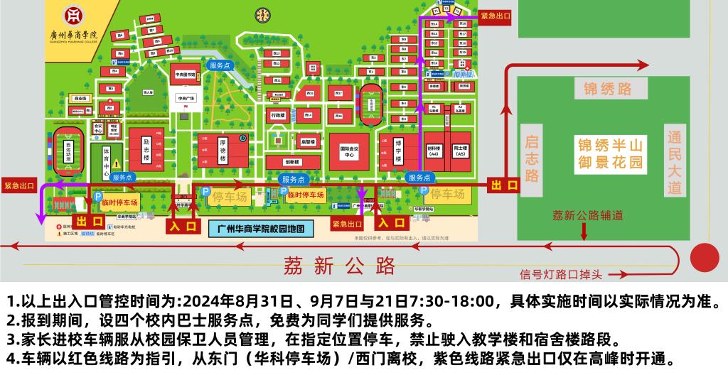 为确保2024年新同学们能够温馨迎接大学生活,我处提前精心规划各项开学准备工作,与校园服务中心、荔湖街道办、雁塔派出所、增城区交通管理等相关部门携手合作,共同为迎新工作保驾护航。我们特别关注报到日的校园交通管理,制定了周密的交通管制策略,确保当天的交通井然有序。