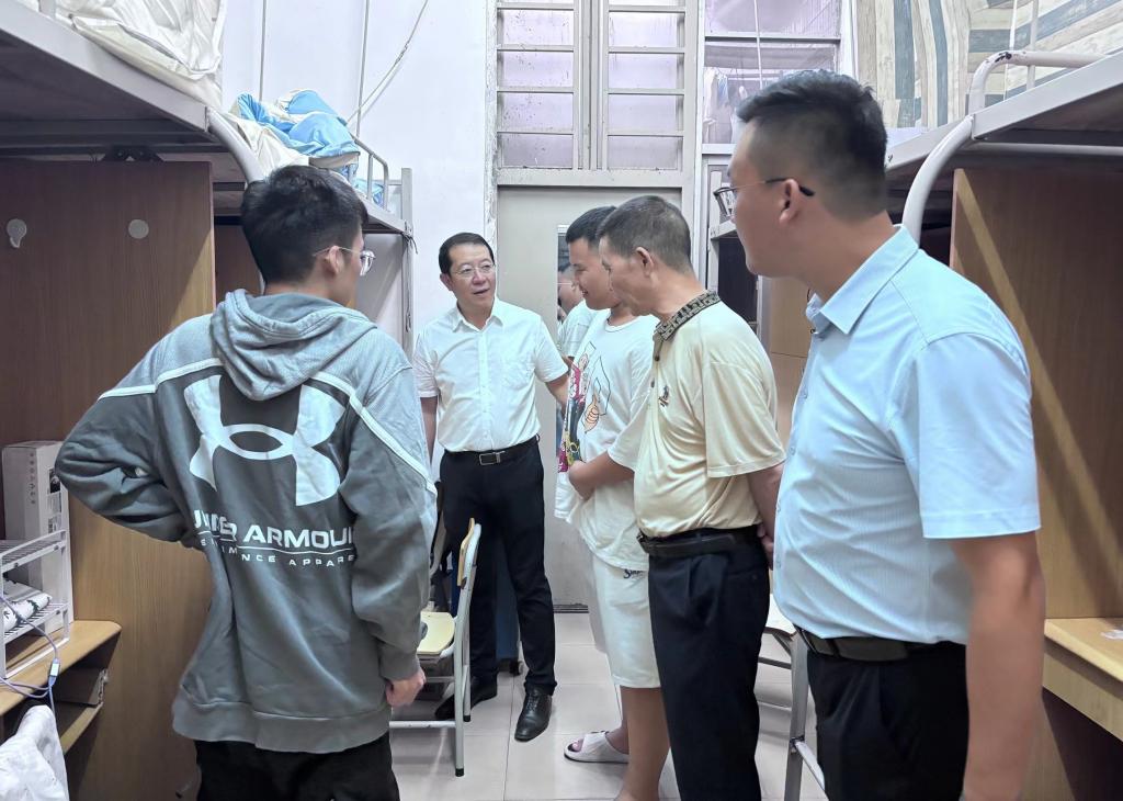 报到日前晚,吕峻闽副校长带领部分二级学院领导和后勤保卫处成员,深入学生宿舍,深入宿舍,进行了一次特别的走访。带着满满的关怀与爱心,逐一询问已到校的同学们是否已经安顿妥当,是否适应了新的校园生活。吕副校长亲切地与新生们交流,详细了解他们的兴趣与生活上遇到的困难,并耐心解答他们的疑问。同时,他还细致地介绍了校园内的各项设施和环境,包括图书馆、食堂、运动场地等,帮助新生们更快地熟悉校园,感受到家的温暖。这次走访不仅拉近了师生之间的距离,更让学生感受到了学校对他们无微不至的关怀。
