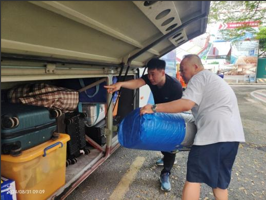为减轻新生们前来报道的行李负担,我处设立了4个服务点,服务点上,我们搭起帐篷,为新生与家长提供遮阳休憩之地。为新生与家长递上一瓶水,送上一份关怀,后勤人员积极帮助新生运送行李,协助新生与家长乘坐校园小黄车,确保学生行李及人员安全、有序地运送至新生宿舍楼下,后勤保卫处的热情服务,温暖每一位新生及家长的心。