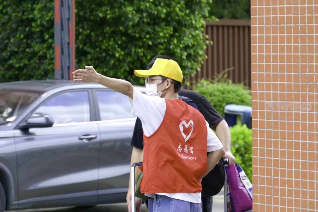 新生报道现场热闹非凡,人声鼎沸。校门口处,值岗师生员工不畏酷暑,头顶烈日,坚守自己的岗位,仔细引导来往车辆出入,守好校园第一道安全防线。校园过道上也布满后勤人员辛勤的身影,后勤及安保人员现场指挥交通,维护车辆行进秩序,积极引导前来报道的新生家长车辆停放到指定地点。经过我处全力维护,确保了6000余次车辆有序进出。我们的坚守,是对新生最真诚的欢迎。