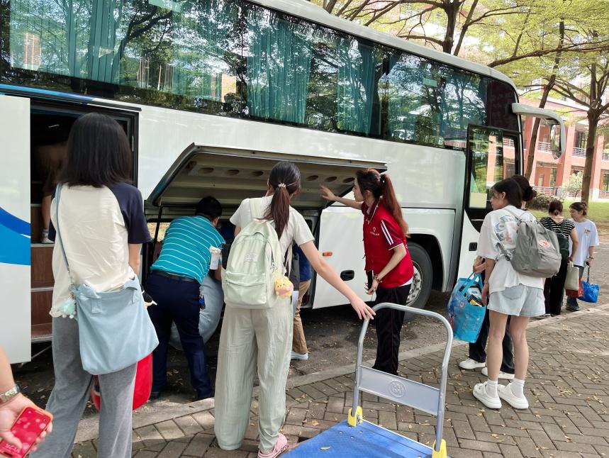 充分整合校内资源,外请大巴车,连同校园小黄车,为新生提供免费的乘车服务。