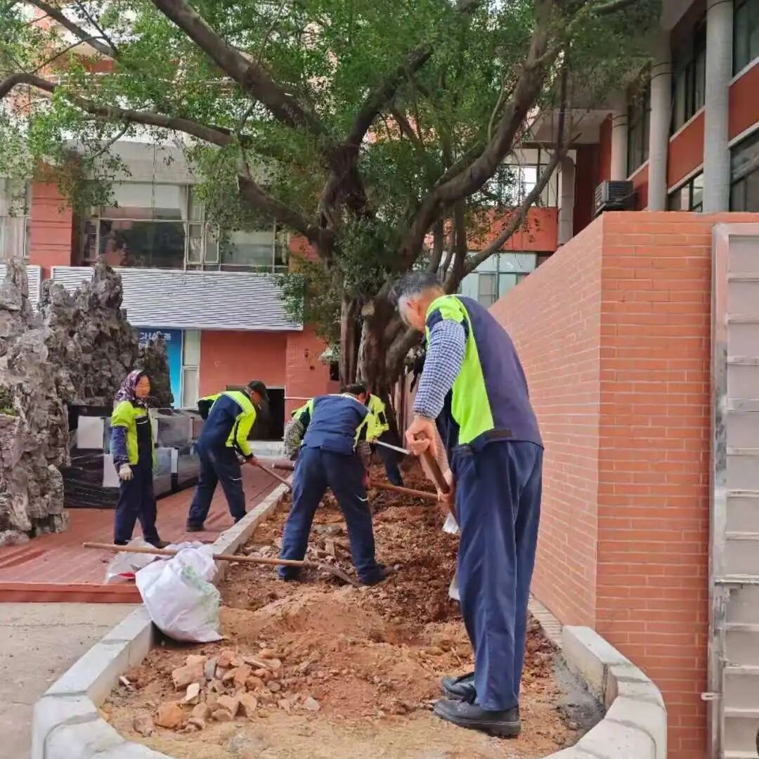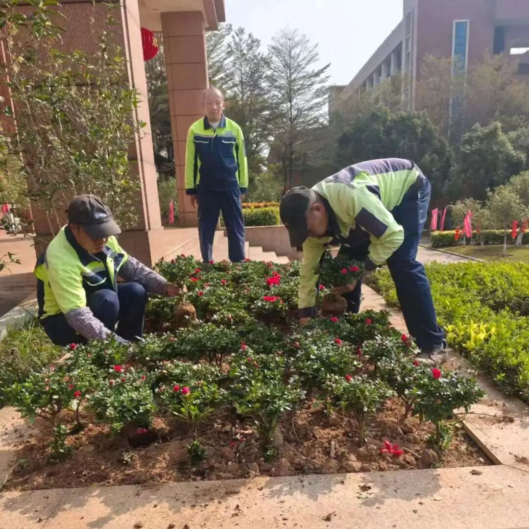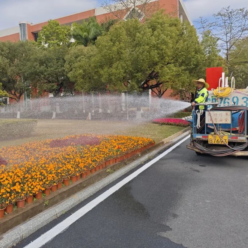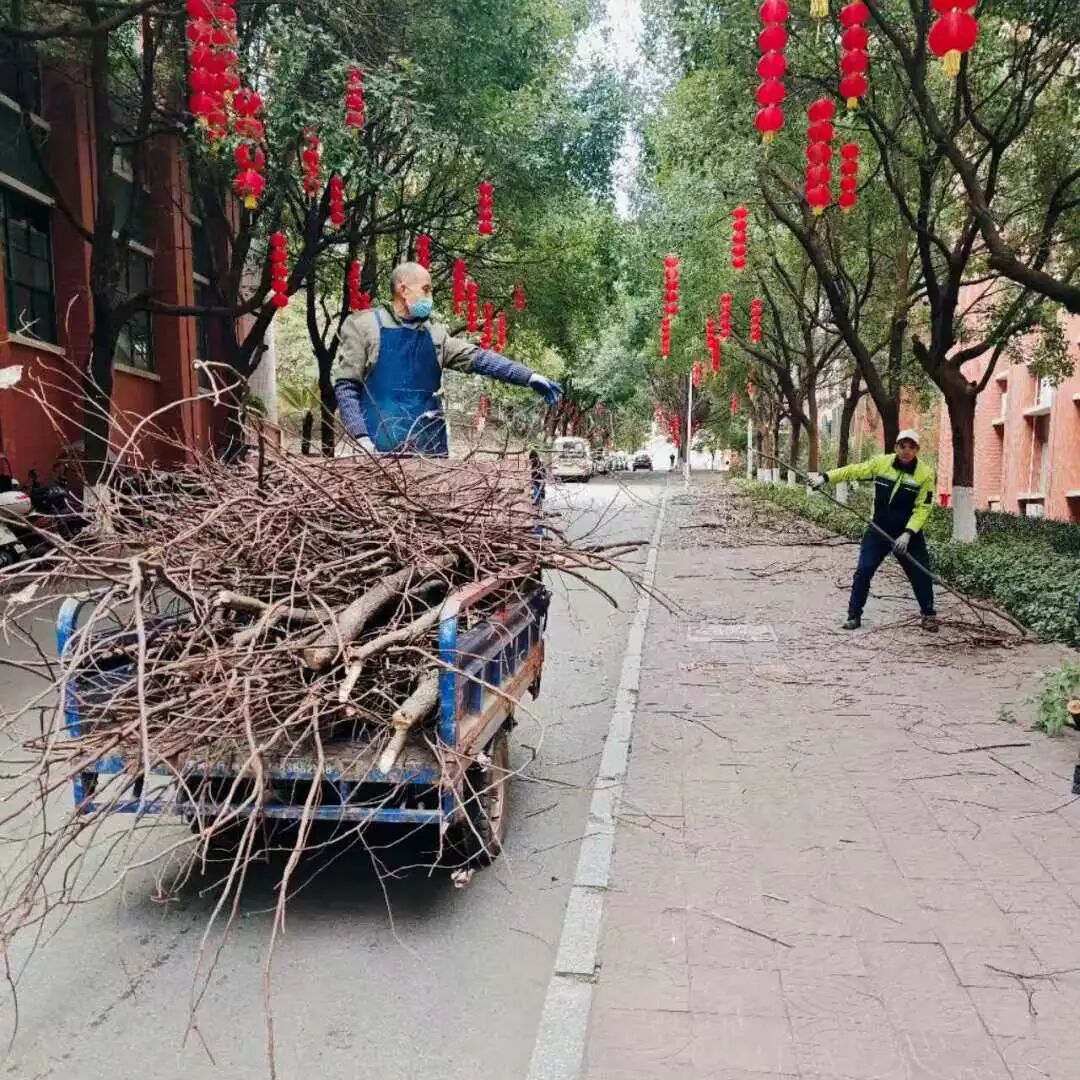 各校区绿化部开展校园绿化养护工作,有序进行植物冬季修剪与防护,并在主要区域布置年桔、桃花等节庆装饰,以绿意装点校园,营造喜庆祥和的新春氛围,为冬日的校园增添浓浓年味。