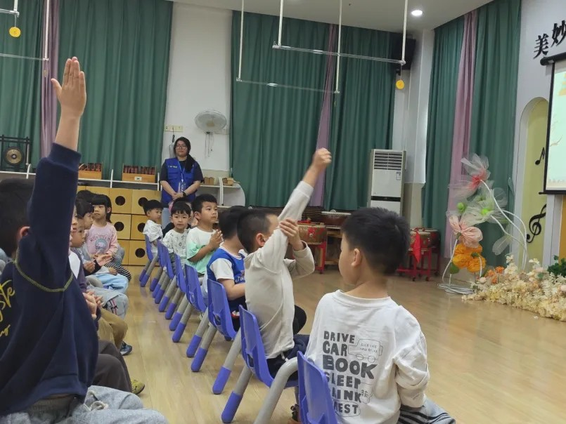 考虑到幼儿的认知特点,宣讲人陈梓鑫摒弃生硬说教,采用趣味讲解、口诀记忆等生动易懂的形式,用孩子们能听懂、能记住的语言,通俗地普及火灾危害、基础消防知识,耐心引导孩子们树立“远离火灾、珍爱生命”的消防安全意识,让抽象的安全知识变得鲜活可感,真正走进孩子们的心中。