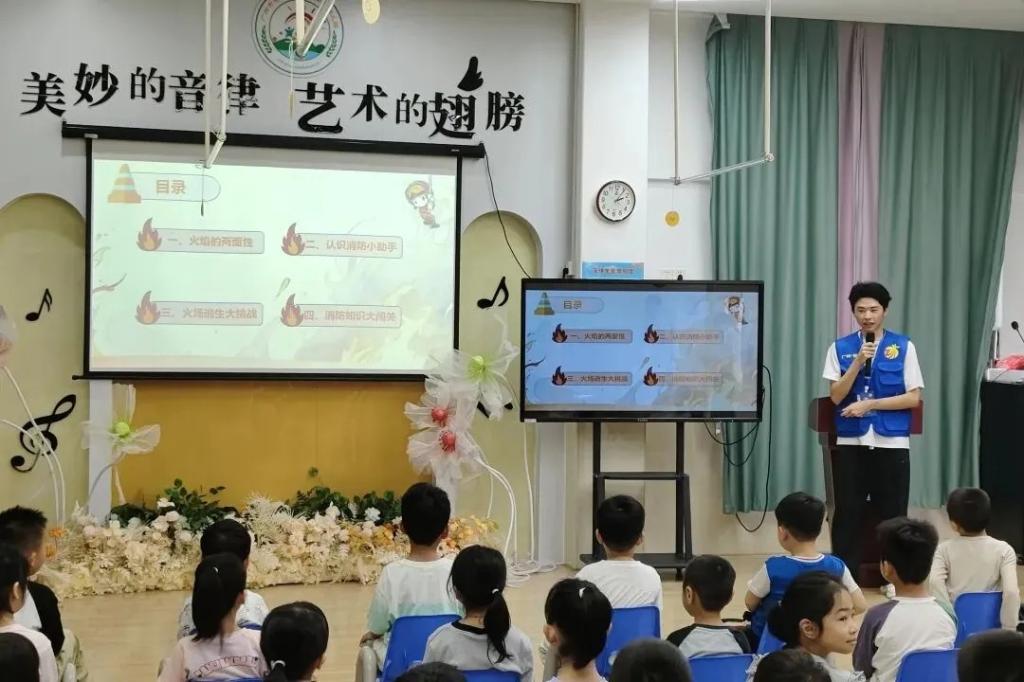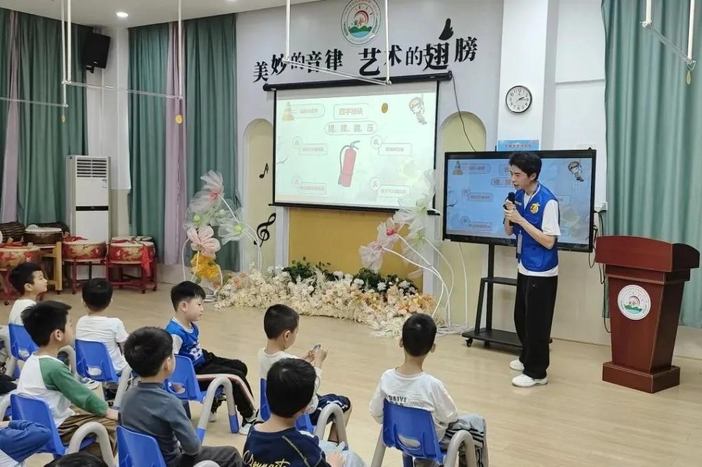 宣讲过程中,特意设置互动环节,让安全学习更具趣味性和参与感。宣讲团成员通过趣味问答、消防器材实物展示等方式,手把手教孩子们认识灭火器、消防栓等常见消防器材,细致讲解基础逃生技巧,引导孩子们模拟逃生场景,在轻松愉快的氛围中,帮助孩子们掌握实用的自我保护能力,让安全意识扎根心底。