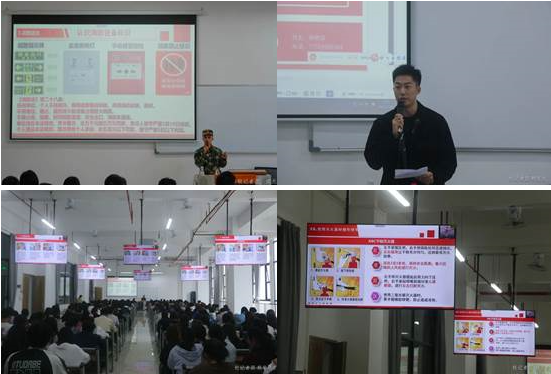为推动此次演练顺利开展,我校采取了“先理论后实践”的方针。下午14:30,消防安全讲座在大会议室举行,四会校区师生代表参加了讲座。讲座中,集团消防中心部钟树深副领班以校园典型火灾事故案例为切入点,用通俗易懂的语言,深入浅出地向师生们讲解了日常生活中如何消除火灾隐患、如何报火警以及如何扑救初期火灾等消防常识,并结合视频的方式详细讲解了灭火器以及防毒面具等逃生工具的正确使用方法,着重剖析讲解高层建筑快速逃生要诀以及注意事项,进一步提高师生消防意识和逃生自救能力。