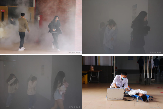 下午15:35,浓烟渐起,警铃乍响,消防应急疏散演练正式开始。由各二级学院辅导员组成的紧急疏散小组迅速到达指定楼层,按照指定的疏散路线,指导学生用湿毛巾捂住口鼻,沉着冷静、快速有序地从楼梯向外撤离到提前划分好安全地带。此次消防演练还模拟了火场中救援被困者的场景,让同学们对火场逃生有更清楚的认识。