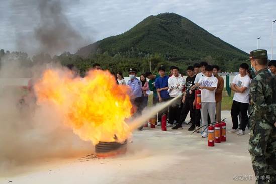 演练结束后,全体参练师生聚集操场,进行消防设施设备实操培训,由钟树深副领班向同学们展示灭火器的使用方法。在实践过程中,同学们认真听讲,积极参与实操。钟树深副领班和后勤保卫办的负责老师及时指出了同学们使用灭火器过程中的错误,并向同学们讲解了快速扑灭“初起火灾”的诀窍,进一步增强了同学们的安全意识。