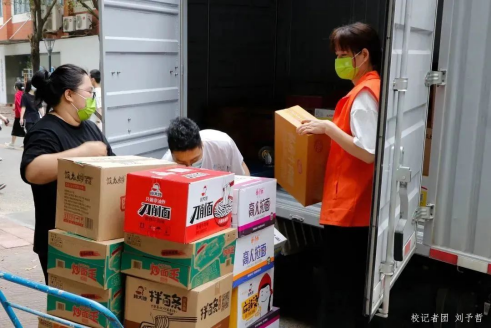 民强茶铺、鸡公煲、沙县小吃等校内热心商家为志愿者们提供暖心饮品和食物