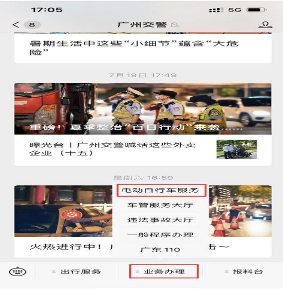 参加学习。在“广州交警”微信公众号的“电动自行车服务”模块,通过“视频学习”栏目观看宣传教育视频,完成学习。
