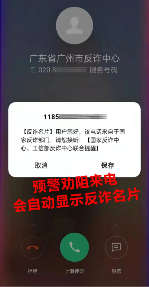 对各级公安机关的反诈预警劝阻电话号码进行标记和来电提醒,帮助群众有效甄别电话来源,进一步提升预警电话的权威性和及时性。
