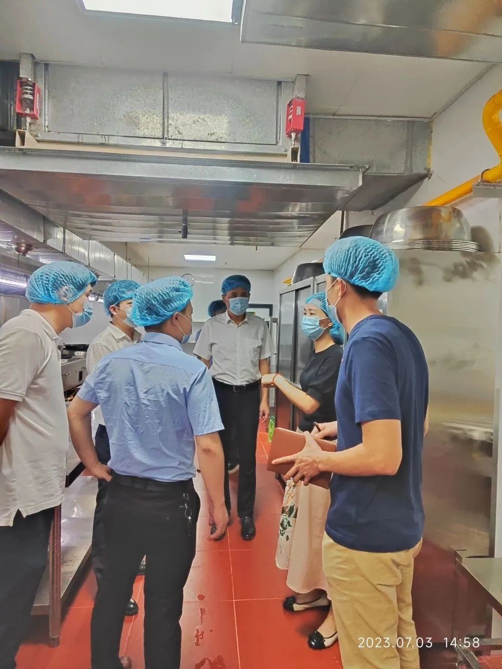 7月3日下午,党委苏宁书记一行深入食堂商铺等场所操作间,重点检查食品制作流程、卫生环境以及消防设施等是否符合规范要求,并指出相关问题,要求继续保持对食品安全的重视,牢固树立“食品安全大于天”的安危意识,致力为广大师生提供更加舒适的餐饮条件,确保安全无死角。