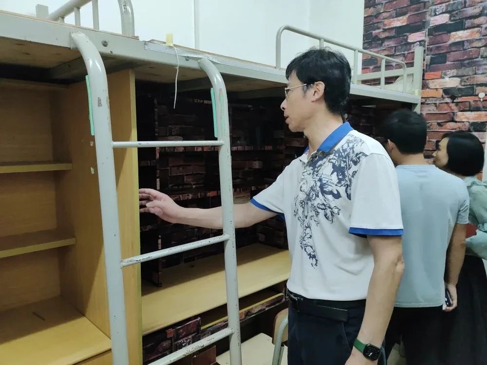 同日下午,王力东副校长带队到学生宿舍对宿舍桌椅、床柜、墙面等各个方面进行仔细检查,王校指出学生宿舍作为日常作息的重要楼宇,要严格把控质量关,同时要求每个宿管员:要高度重视宿舍安全,针对排查出的问题,及时记录并落实整改,确保消除宿舍安全隐患,杜绝事故发生,为即将入住的新同学创造安全舒适的居住环境。